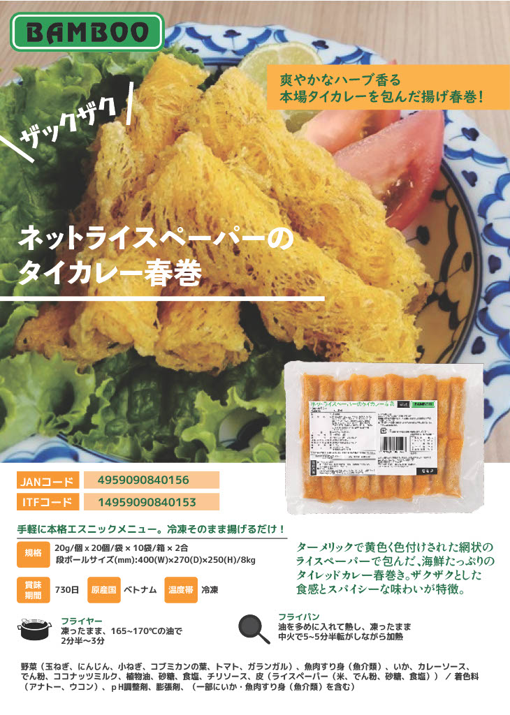 当社は、ベトナム産冷凍食品ブランドの「BAMBOO」をはじめとした多種多様なベトナム産の冷凍食品も取り揃えております。