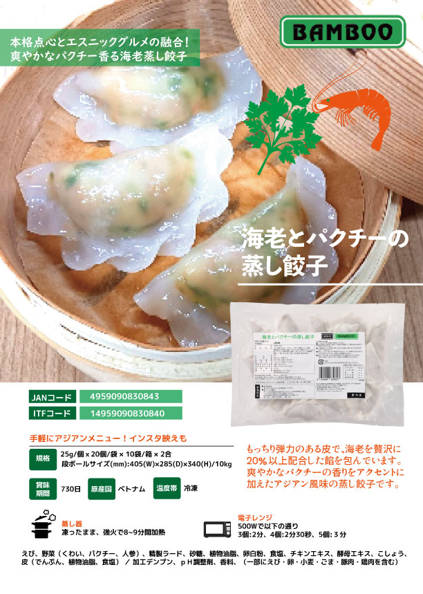 BAMBOO 海老とパクチーの蒸し餃子/冷凍点心