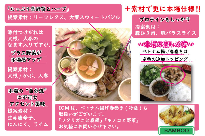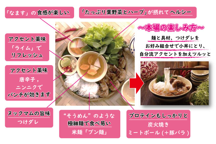| 情報1 | 実は、ベトナムではフォー麺よりもブン麺が圧倒的に多く食されています。 |