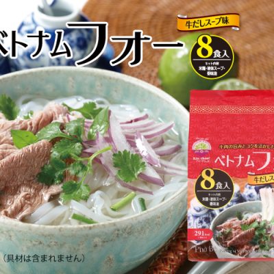 めん(米(ベトナム産)、でん粉、食塩)、スープ(牛骨、鶏骨、砂糖、食塩、香辛料、食用油脂 / 調味料(アミノ酸等)、香料)、香味油(食用油脂、アナトーシード / 香料、酸化防止剤(V.E))、(一部に卵・牛肉・鶏肉・大豆を含む)