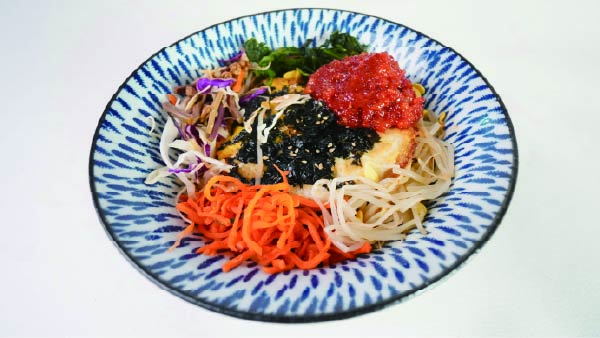 パンチャン(いかヤンニョム)を使った簡単メニュー!いかヤンニョムの甘辛い味とごま油がよく合います。