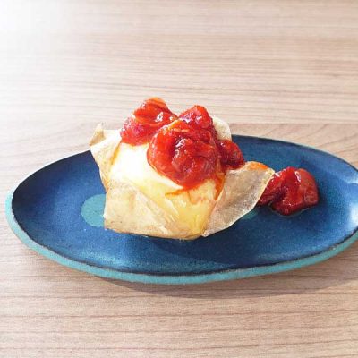 1の上にバターとチャンジャをトッピングして完成。