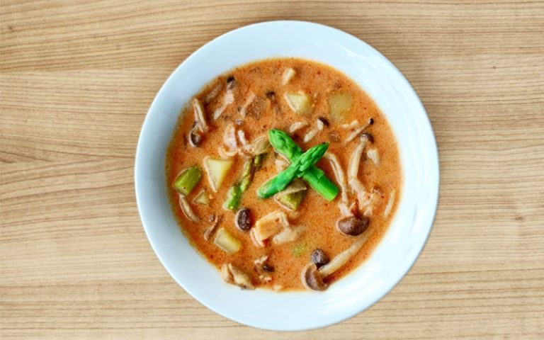 - ひと煮立ちしたら豆乳を加え、さらにひと煮立ちしたら完成。