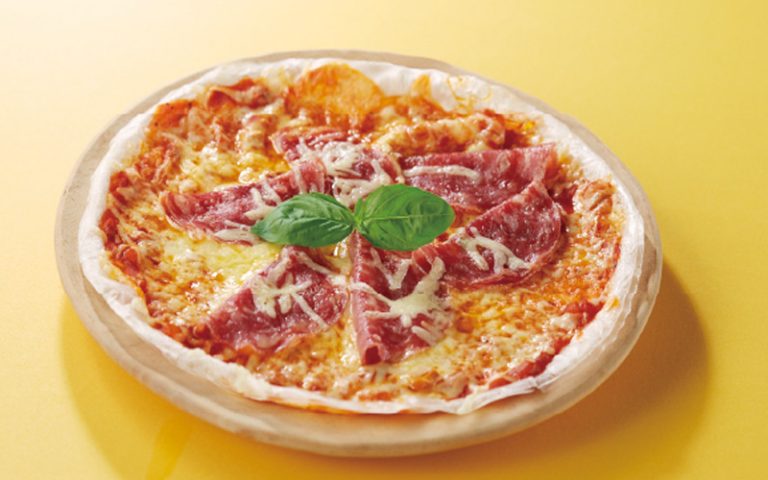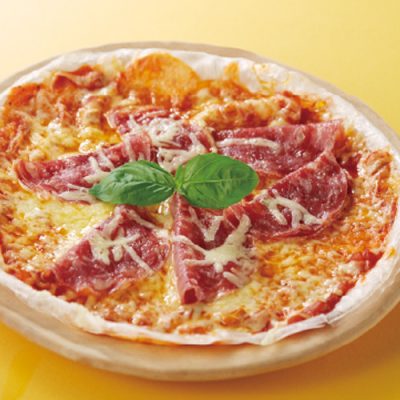 - チーズを乗せ、あればサラミやハムも乗せる。