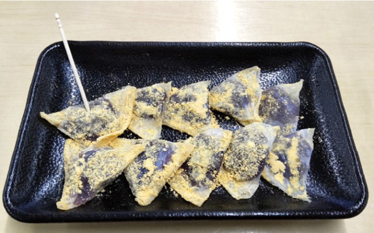 - あらかじめ皿に入れておいたきな粉に両面を付ける。